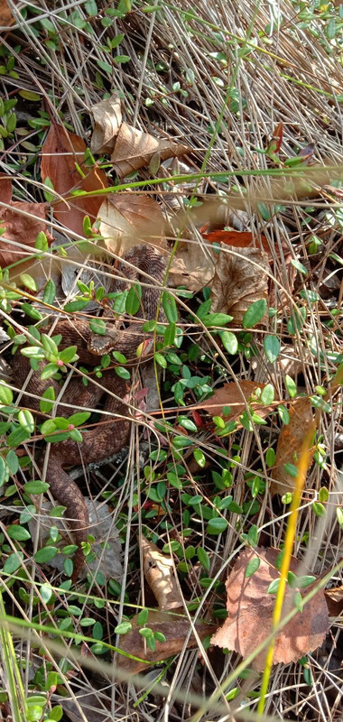 У нас в лесу Кивикко по весне гадюк много. В том числе и таких маленьких. Они там в скалах зимуют, а с наступлением весны расползаются и греются на тропинках. Одна такая маленькая уже с характером была - делала выпады, так что её пришлось обогнуть по широкой дуге) Причём тоже коричневая была. На них в бинокль хорошо издалека смотреть - у них очень красивые, рубиновые глаза.