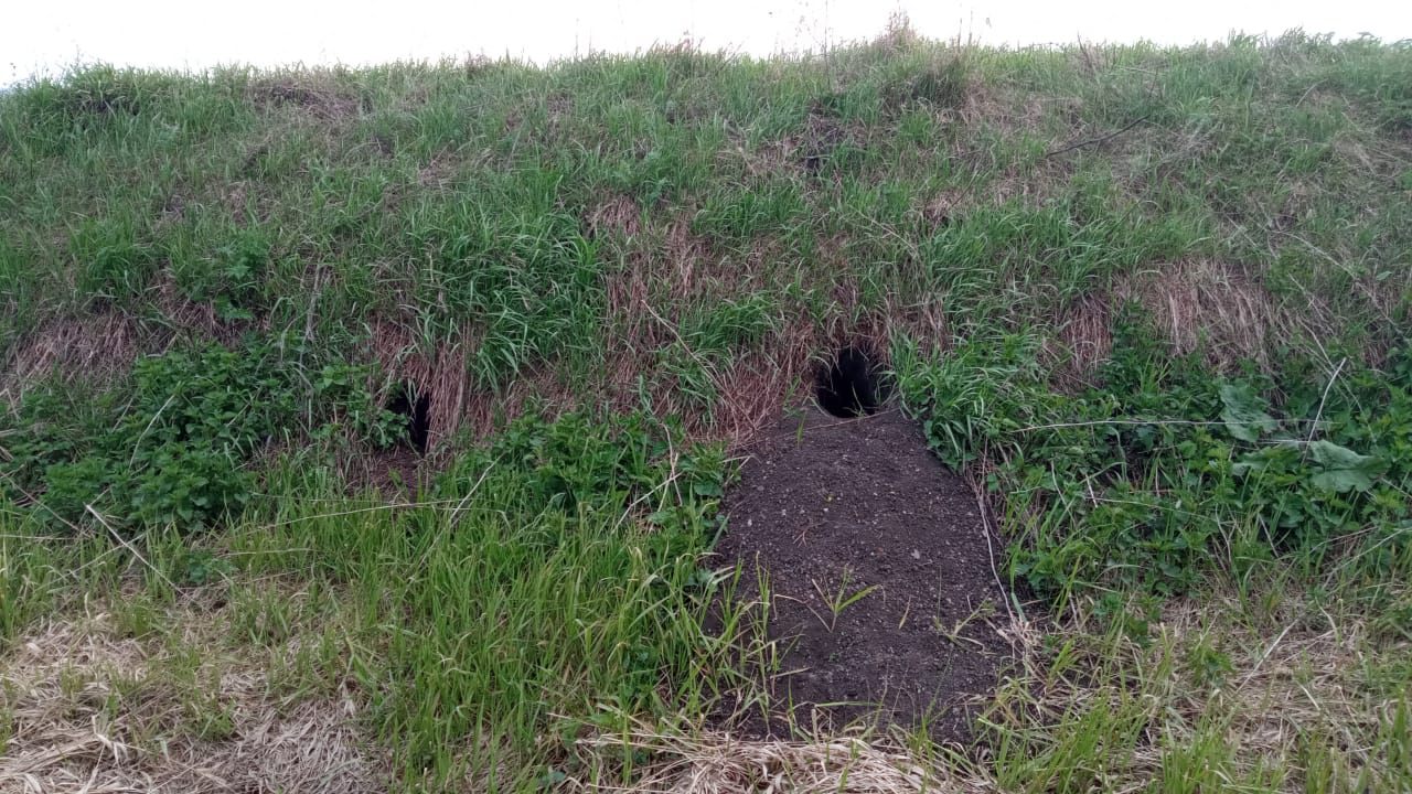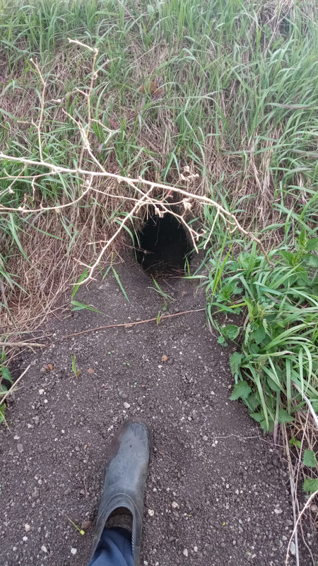Эти норы я нашёл чуть поодаль, возле небольшого водоёма. Грунт был свежий и чуть влажный, из нор ничем не пахло. Когда-то давно там видели барсуков, но это навряд ли их нора - скорее всего лисья или енотовидной собаки (их периодически там наблюдают).