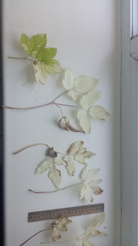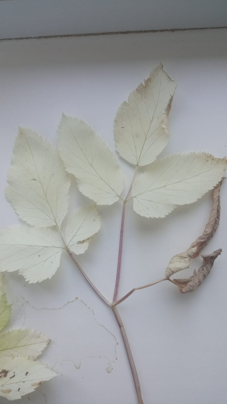 Сегодня в лесу нашёл сныть-альбинос. Эти были несколько побегов в радиусе 10 метров, на следующей полянке тоже были такие побеги. Что характерно - они были более вялыми и жухлыми, чем нормальные зелёные, большинство из нихчто лежали на земле. Хотя листья у них были плотные и более гладкие, чем у зелёных побегов. Скрытый текст
